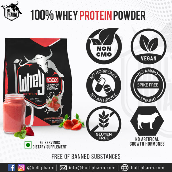 - HEALTHIER WHEY: BULLPHARM 100% Whey Protein is healthier cold processed, non-denatured, and free of synthetic growth hormones (no rBGH or rBST) and is higher in key nutrients. Bull Pharm 100 % Whey Protein is Gluten-free, Soy Free, NON-GMO, and yet tastes so great.