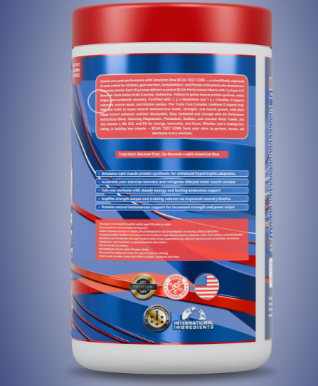 American Raw BCAA TEST CORE is engineered for athletes, gym enthusiasts, bodybuilders, and sports professionals who train with intensity and expect serious performance from their supplements. Made proudly in the USA, this advanced formula combines muscle-building aminos, a complete hydration system, and natural performance support to help you push harder, recover faster, and get more from every session. Designed with precision and backed by real ingredient science, BCAA TEST CORE is your all-in-one solution for training power, muscular endurance, hydration, and strength optimization.