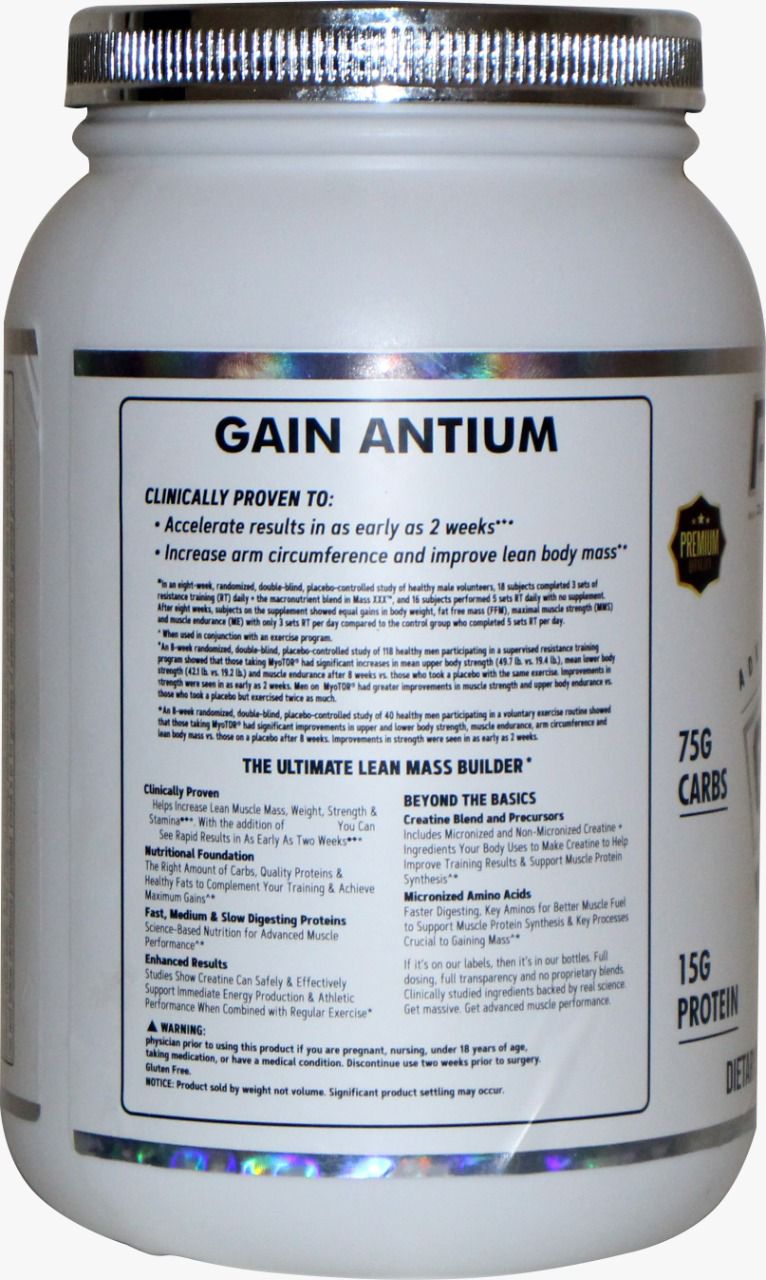 PSN Gain Antium is a high-calorie mass gainer formulated to support rapid weight gain, increased muscle size, and improved strength. With 900 calories, 75g carbohydrates, and 15g protein per serving, this blend delivers the ideal nutritional balance for hard gainers and athletes needing a significant caloric boost.