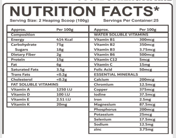 - Each 100g serving provides a powerful 900 kcal, ideal for hard gainers, athletes, and anyone looking to increase daily calorie intake for faster muscle growth.