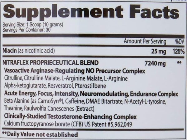 • Creatine bound to nitrate, creatine nitrate produces two desirable effects on performance Creatine for strength and nitrate for pumps N-Acetyl L-Tyrosine: It is a core part of the essential energy blend and helps support peak Mental and physical performance Caffeine: A popular and proven source for energy