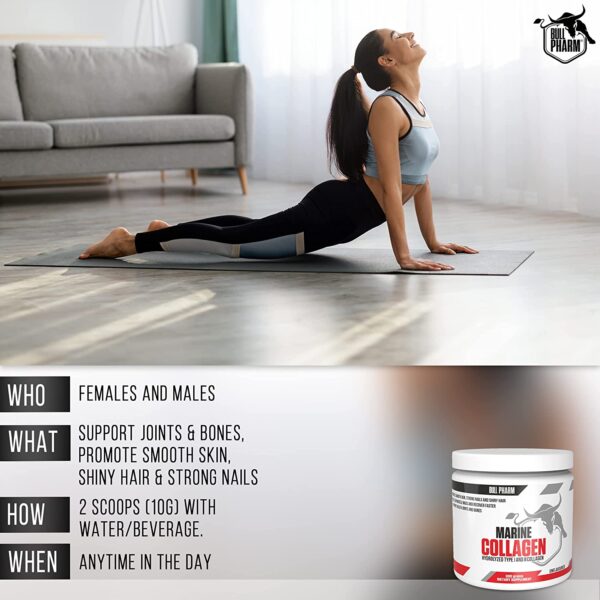 FOR HEALTHY, SMOOTH SKIN: Formulated with types I & II| hydrolyzed collagen peptides, BullPharm Marine Collagen for women and men can help increase skin elasticity, minimize fine lines and wrinkles, and boost hydration for healthy, glowing skin.