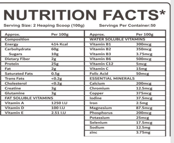 - Each 100g serving provides a powerful 900 kcal, ideal for hard gainers, athletes, and anyone looking to increase daily calorie intake for faster muscle growth.