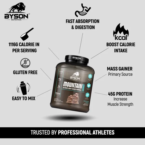 - High-Quality Standards: Byson Nutrition ensures that Mountain Gainer is manufactured using premium ingredients and follows strict quality control measures. You can trust that you’re getting a reliable and superior product that meets the highest industry standards.