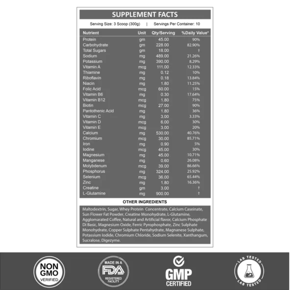 - Versatile Serving Size: Mountain Gainer allows for customizable serving sizes, making it suitable for individuals with varying caloric and nutritional needs. You can adjust the serving size according to your specific goals and dietary requirements.
