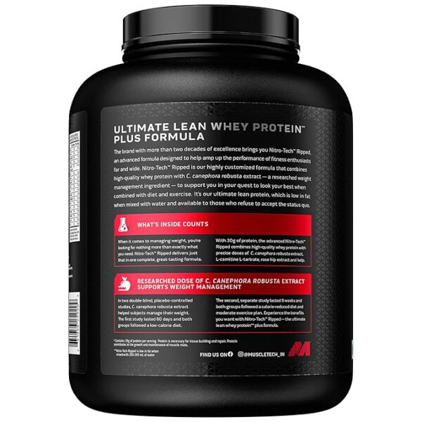 • PROTEIN POWDER FOR WEIGHT LOSS: MuscleTech Nitro-Tech Ripped is the ultimate low fat lean whey protein plus weight loss formula that combines the highest quality whey protein and C. canephora robusta