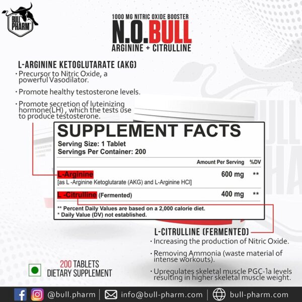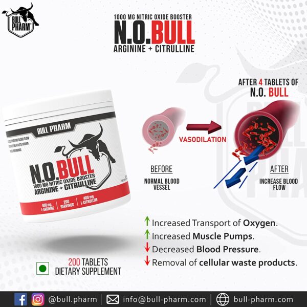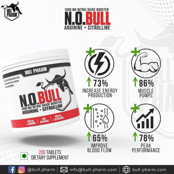 CERTIFIED INGREDIENTS: Backed by science and clinically dosed quantities of L-Arginine and L-Citrulline boost nitric oxide production, N.O. Bull is here to give vein bursting pumps whether you are cutting for the stage or needing that extra boost in the gym.