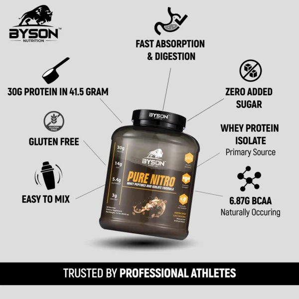 Introducing Pure Nitro Whey Protein, the ultimate fuel for your muscles. Packed with powerful ingredients, Pure Nitro is designed to support your fitness goals and help you unleash your full potential. Here’s why Pure Nitro stands out from the crowd: