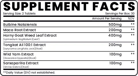 Powered by Bulbine Natalensis, Maca Root Extract, Horny Goat Weed, Tongkat Ali, Wild Yam, and Sarsaparilla Extract, this potent blend naturally supports testosterone production, muscle growth, and enhanced performance.